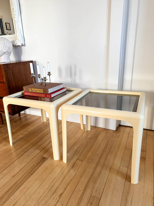 Table d'appoint tubulaire vintage en chrome et verre teinté