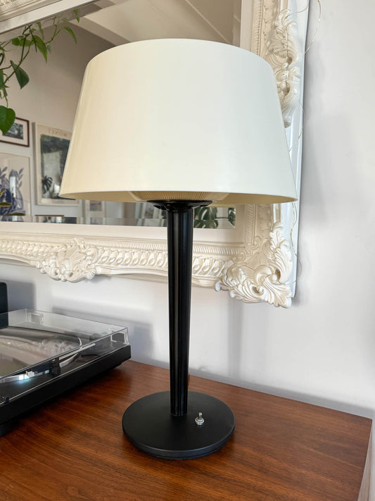 Fauteuil vintage en cuir noir et tubulure chromée Mid-Century
