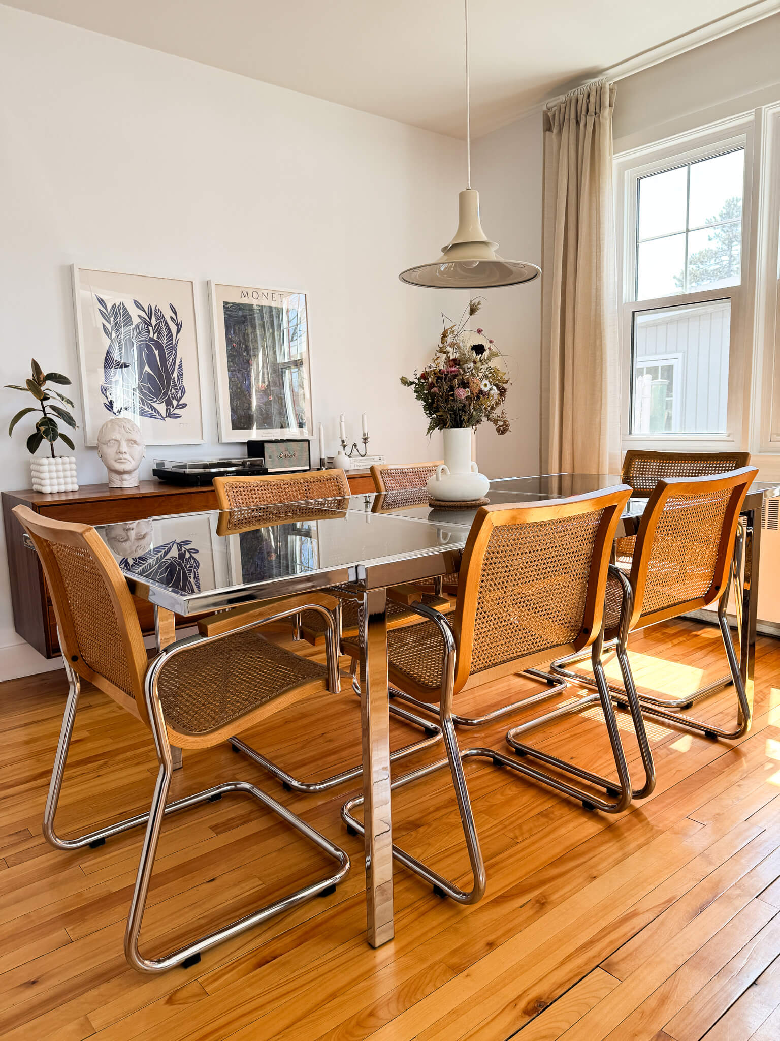Ensemble de 6 chaises Cesca rares et table Milo Baughman extensible, 70s