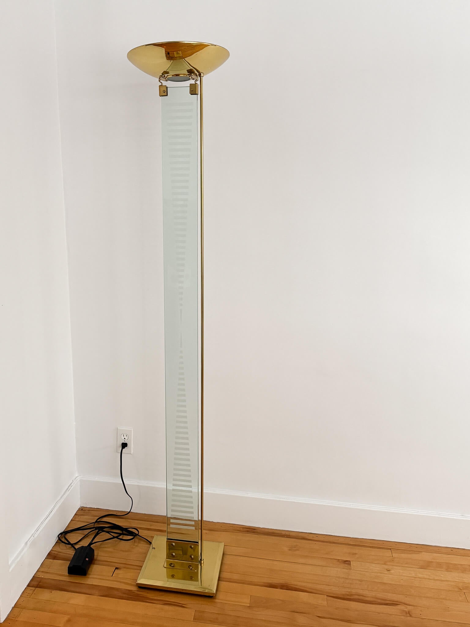 Lampe sur pied vintage en verre et laiton par Mauro Martini pour Fratelli Martini, 1980s