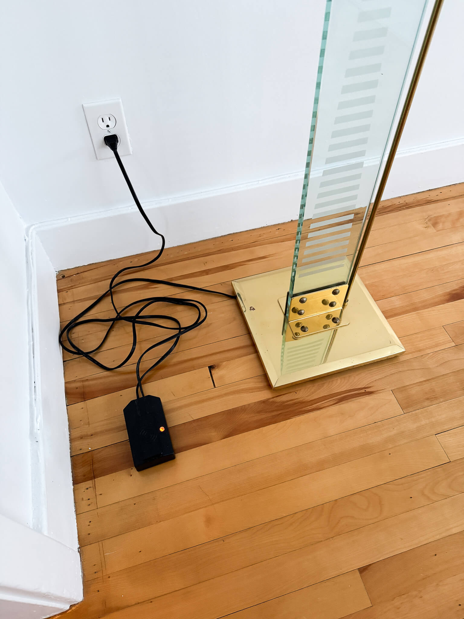 L'électricité est d'origine. Interrupteur filaire avec variateur à glissière au pied.