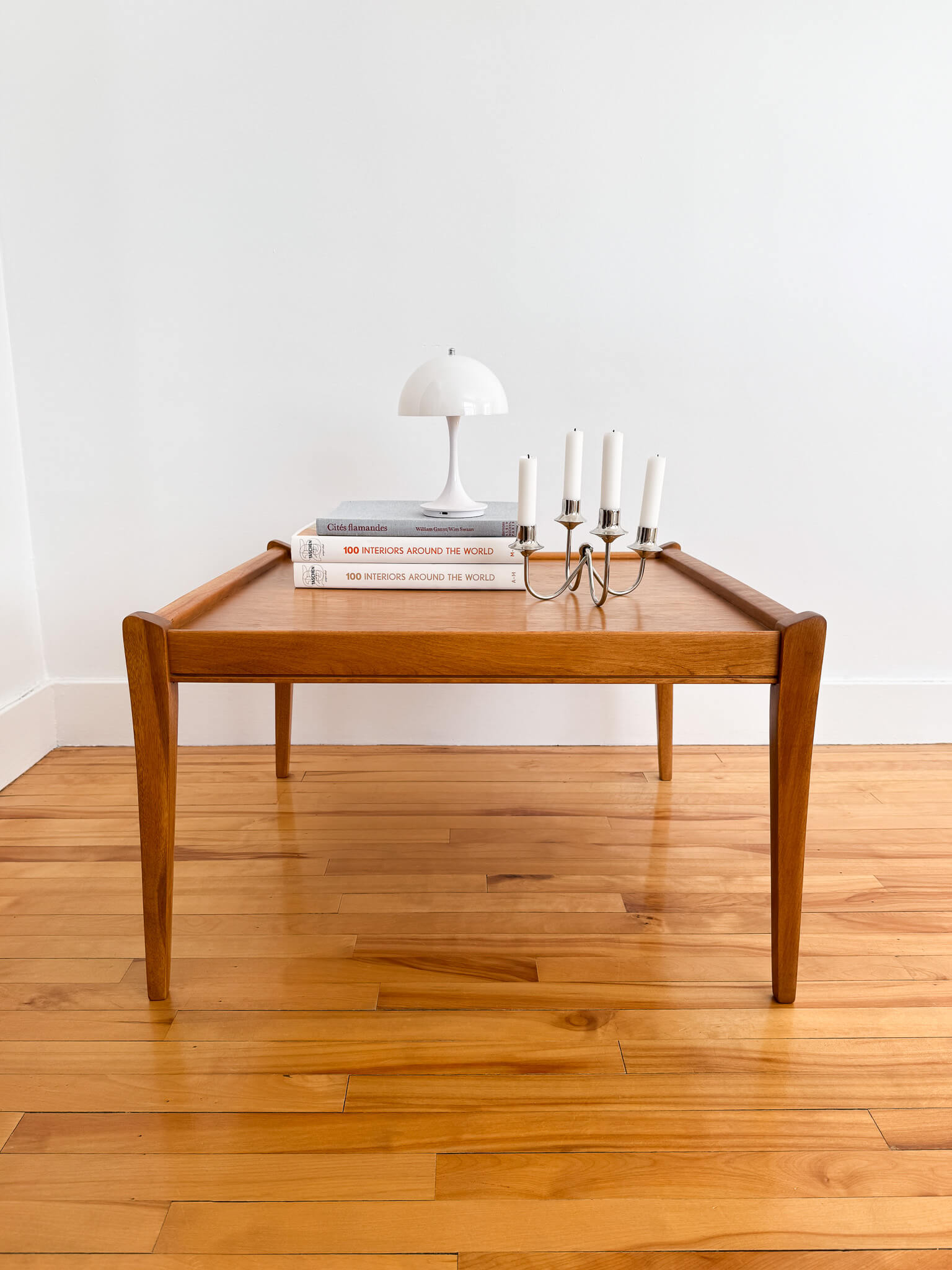 Table d'appoint vintage en bois de style Mid-Century danois. Elle a entièrement été restaurée - solidifiée, sablée, huilée et cirée. L'huile était teintée de couleur noyer antique.